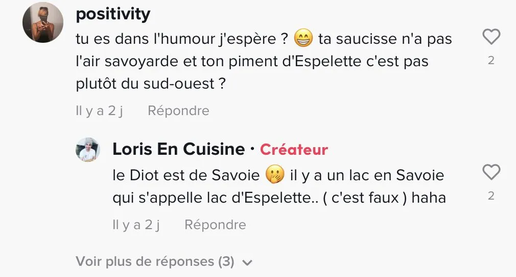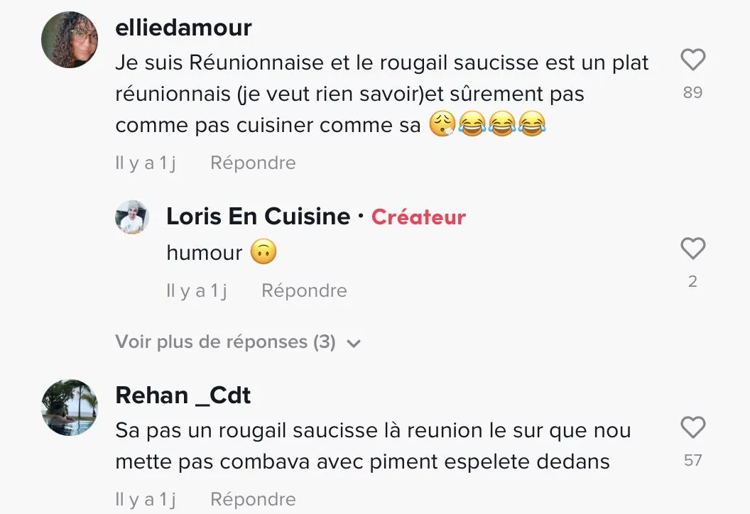Un TikTokeur affirme que le rougail saucisse est savoyard, Loris En Cuisine à 50K Abonnés et se définit cas un chef autodidacte.
