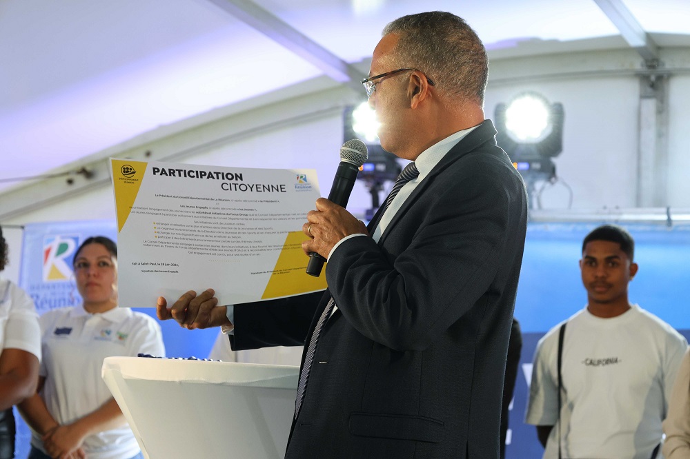 Autre moment phare de Révèl out talent : la signature par le Président Cyrille Melchior d’un contrat d’engagements avec des jeunes. « Ces jeunes-là vont être nos référents dans la définition et l’amélioration de la politique en faveur de la jeunesse réunionnaise, a déclaré Cyrille Melchior, en présence de la vice-présidente déléguée à la Jeunesse Sophie Arzal et des conseillers départementaux Aurélien Centon et Jeanne Hoarau. Nos jeunes rencontrent des difficultés, certes. Mais ils ne doivent pas être en désespoir. C’est pour cela que nous les écoutons et nous nous proposons de travailler avec eux. C’est une façon travailler qui est participative« .