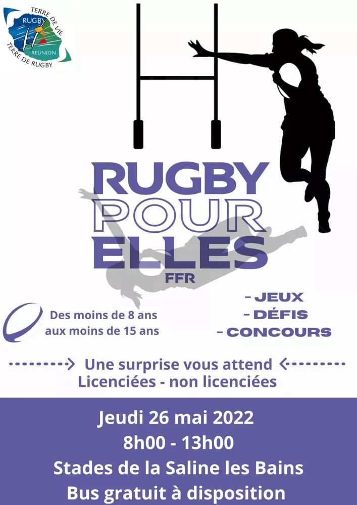 - Rugby pour Elles (de 8h à 13h au Stade de la Saline les Bains) : Cette 1/2 journée sera dédiée aux licenciées moins de 8 ans, moins de 10 ans, moins de 12 ans et moins de 15 ans. Mais pas que ! Chaque licenciée pourra faire découvrir sa passion à une autre jeune fille autour d’ateliers rugby. Le programme s’annonce chargé en animation et en rencontres. Nous aurons l’honneur d’accueillir Shannon Izar et Lina Guerin, toutes deux joueuses internationales, sélectionnée dans l’équipe de France.