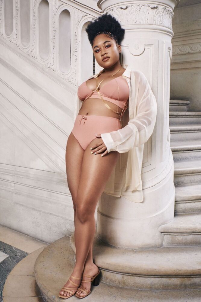 Disponible en ligne et en magasins depuis quelques jours, la première partie de la ligne de sous-vêtements fait déjà des ravages. Veste zippée dorée en velours assortie à un pantalon de jogging, ensemble lingerie noir et nude transparent ou encore un crop top en mesh transparent imprimé de vagues bleues avec son cycliste en résille, la collection se veut sexy mais raffinée, entièrement inscrite dans le thème « Nothing To Hide » (Rien à cacher) destiné aux Jolies Nanas et portées par des modèles de différentes morphologies.
