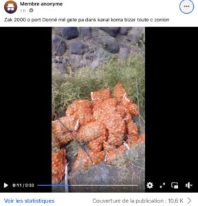 Une vidéo anonyme publiée sur notre groupe Facebook montre des centaines de sacs d’oignons abandonnés dans un canal au niveau de la ZAC 2000 du Port. L’auteur de la vidéo, qui a souhaité rester anonyme, exprime son incompréhension face à cette méthode de gaspillage, suggérant qu’il aurait été préférable de les donner plutôt que de les jeter :