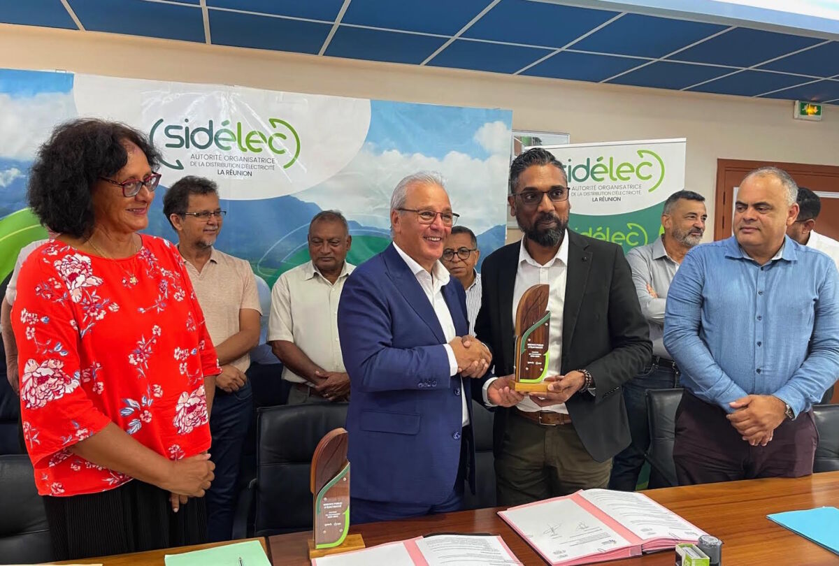 C’est au Sidélec Réunion, à Sainte-Suzanne, en présence des représentants de la Civis, du TCO et de la Cinor que Maurice Gironcel et Patrice Selly, respectivement président du Sidélec Réunion et président de la CIREST, ont formalisé leur ambition pour accélérer la transition énergétique du territoire EST de l’île. Une convention de partenariat a été signée ce vendredi matin, 17 mars, par les deux élus en présence des autres membres de la Commission consultative paritaire.