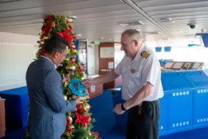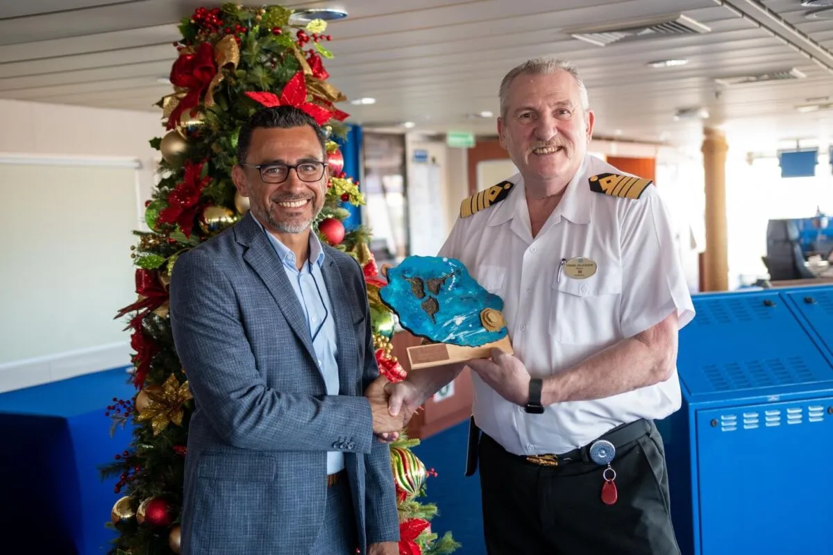 Le maire du Port, également président du Conseil de surveillance du Grand Port Maritime de La Réunion (GPMDLR), a été reçu à bord du paquebot, le Norwegian Jade. À la tête d’une délégation, Olivier Hoarau a rencontré le commandant Frank Juliussen avant de visiter ce navire de 2 882 passagers et plus d’un millier de membres d’équipage. Le Norwegian Jade, 8ème bateau de croisière de la saison, a fait escale à La Réunion le mercredi 14 décembre avant de se rendre en Afrique du Sud. Les passagers ont pu profiter de l’île et de la ville du Port qui propose avec ses partenaires un marché artisanal de souvenirs au Grand Marché à chaque escale.