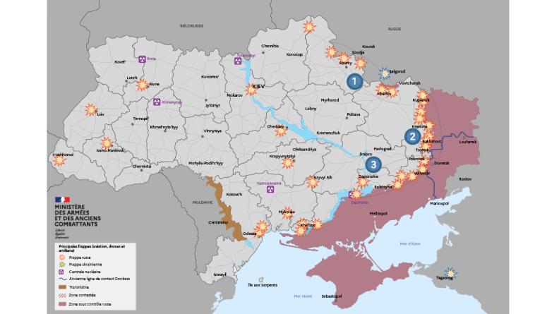 La carte mise à jour par le ministère des Armées montre une situation toujours tendue en Ukraine, où les combats se poursuivent sur plusieurs fronts stratégiques. Les principales zones touchées se situent dans l’est et le sud du pays, des régions déjà fortement marquées par le conflit.