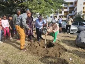 Cet après-midi, un petit flamboyant a été planté sur l’îlot Flamboyant, rue Théodore Chasseriau au Chaudron. Cette mise en terre s’est inscrite dans un moment fort : le lancement officiel d’un projet ambitieux pour le quartier, en présence des habitants, des élus et des acteurs du territoire. Ensemble, ils ont scellé leur engagement pour un Chaudron plus vert, plus solidaire et plus dynamique. Un acte d’espoir et de mémoire, à l’image d’un quartier qui célèbre cette année ses 60 ans d’histoire et de résilience.