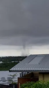 Une trombe marine a été observée ce jour au large de Saint-Gilles, sur la côte ouest de La Réunion. Le phénomène, visible depuis le littoral, se manifeste par une colonne d’air en rotation reliant un nuage à la surface de l’océan. Bien que généralement de courte durée et moins puissante qu’une tornade terrestre, une trombe marine peut représenter un danger pour les activités nautiques. Prudence !