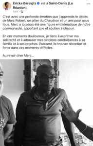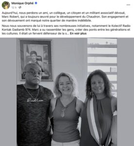 Suite à son décès, de nombreux hommages ont afflué sur les réseaux sociaux, témoignant de l’impact profond qu’il a eu au chaudron et dans le milieu culturel de l’île. Élus, personnalités et internautes ont salué son grand cœur et son dévouement.