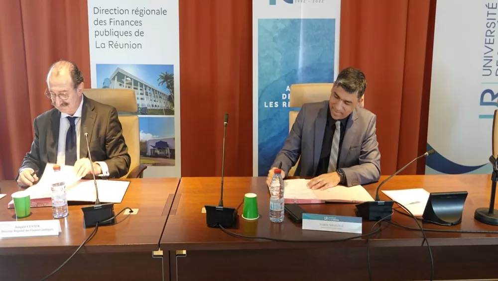 Cette vocation à former des étudiant·e·s souhaitant devenir fonctionnaires via la préparation aux concours, combinée à la volonté de la Direction régionale des Finances publiques (DRFIP) de mieux faire connaître les métiers et les parcours de ce secteur, a fait naître un partenariat, signé ce vendredi 8 juillet entre l’Université de La Réunion, représentée par son Président, M. MIRANVILLE et la Direction régionale des finances publiques, représentée par son Directeur régional, M. Joaquin CESTER.