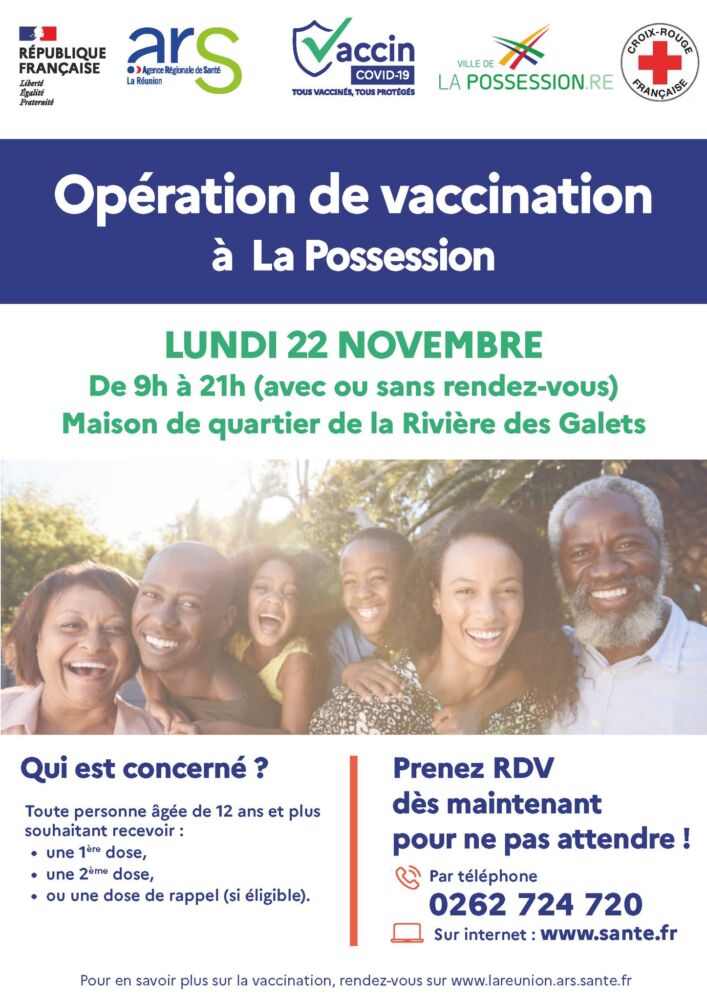 L’ARS, en lien avec la Croix Rouge et la commune de La Possession, organise une opération de vaccination de proximité le lundi 22 novembre à la Maison de quartier de la Rivière des Galets.