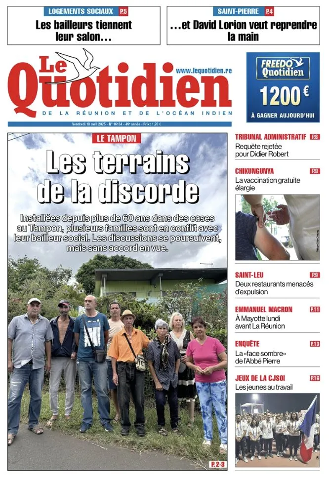 Résumé des principaux titres du journal Le Quotidien de La Réunion du vendredi 18 avril 2025 :