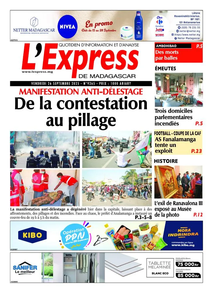 • Manifestations anti-délestage : La capitale a connu une nouvelle flambée de violences avec pillages et incendies. Le préfet d’Antananarivo a instauré un couvre-feu de 19h à 5h du matin.