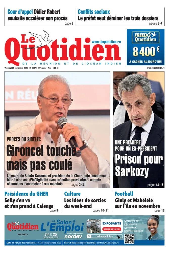 • Nicolas Sarkozy : Condamné à de la prison ferme, une première historique pour un ex-président français, avec un fort écho jusque dans l’océan Indien.