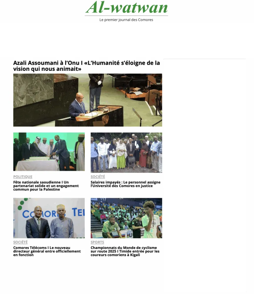 • ONU – Discours d’Azali Assoumani : Le président comorien a dénoncé à New York un éloignement de « la vision qui nous animait », plaidant pour une humanité plus solidaire.