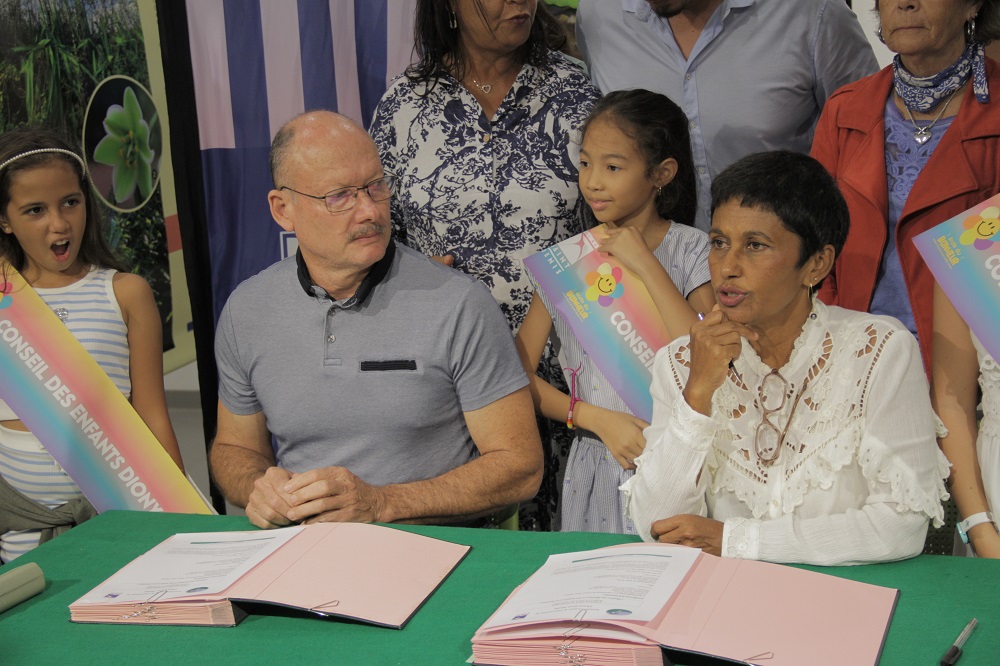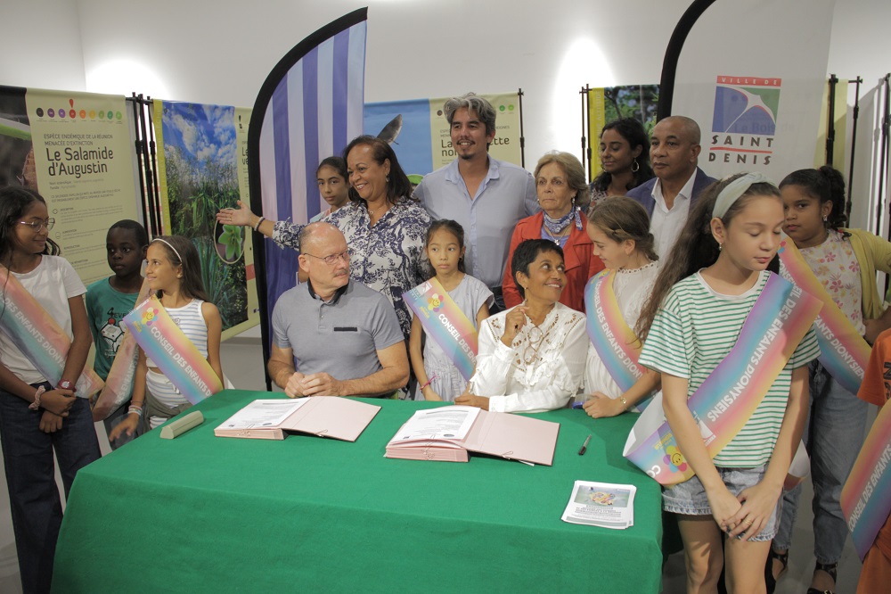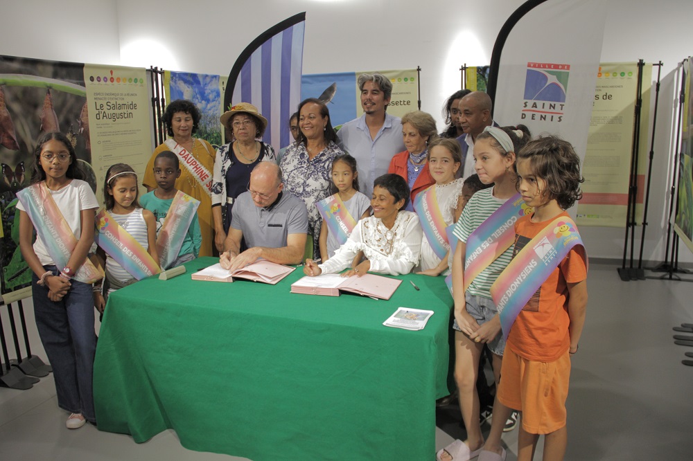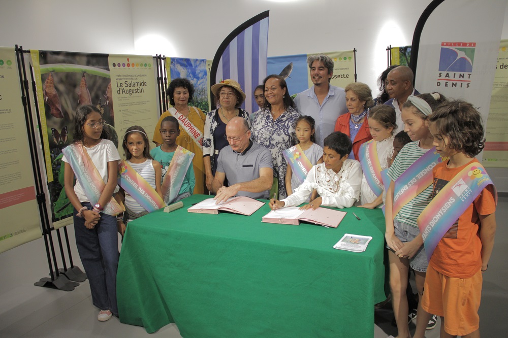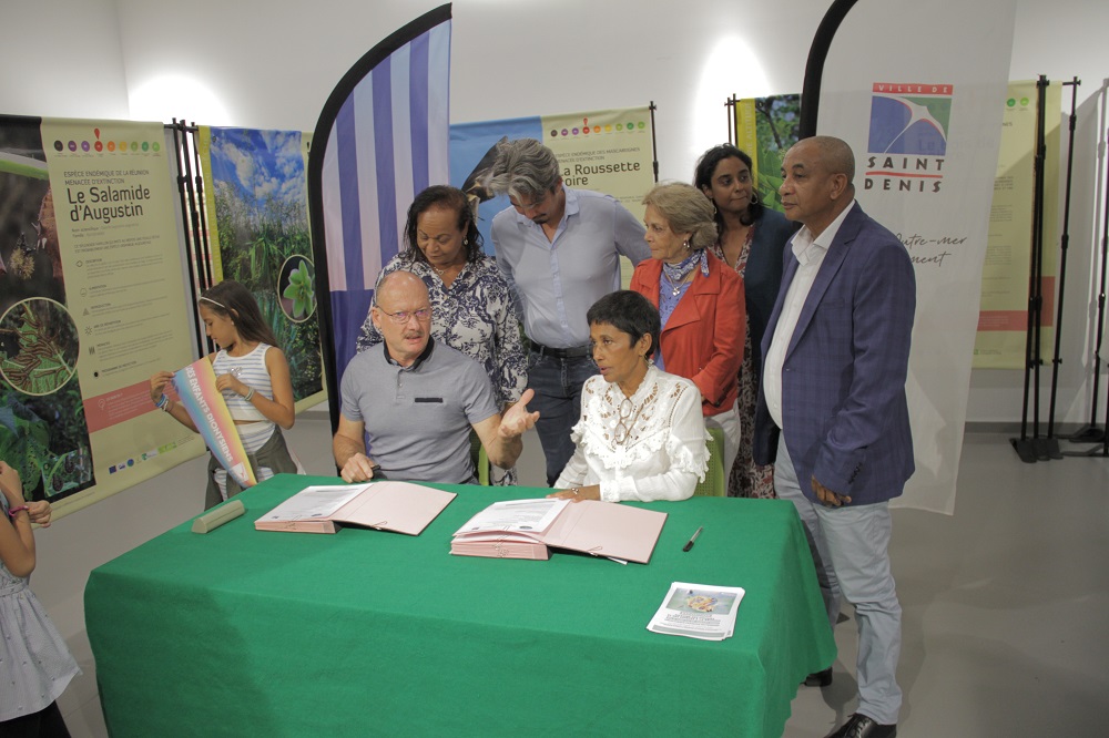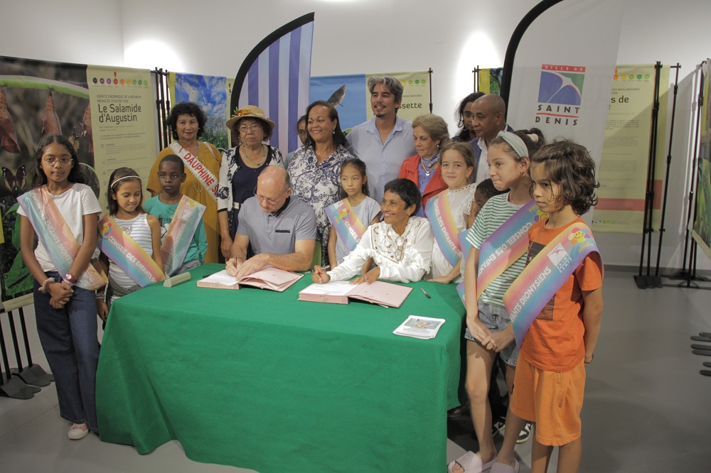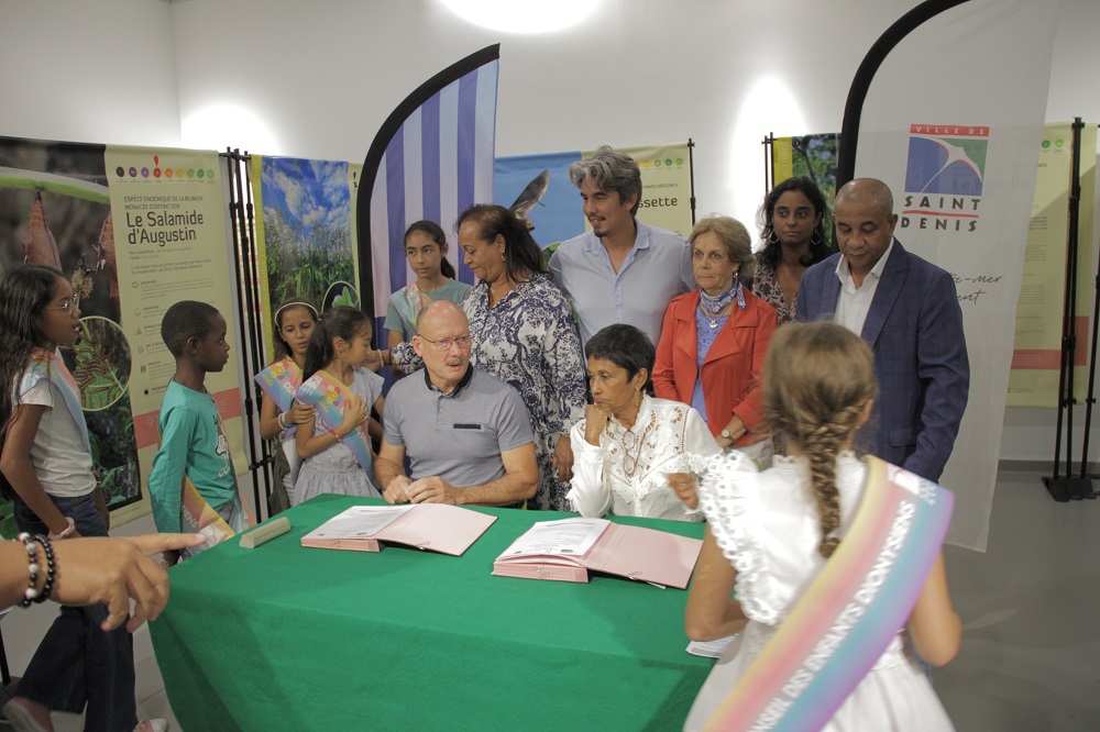 Le 5 juin, Éricka Bareigts, maire de Saint-Denis, Brigitte Adame, élue du secteur Montgaillard, Sonia Bardinot, élue déléguée à l’école du bonheur, et Jean Alexandre Poleya, élu délégué à la ville plantée, étaient présents pour le vernissage de l’exposition « Histoires des hommes et des espèces de la Réunion », proposée par l’association AVE2M, œuvrant pour la préservation de nos milieux.