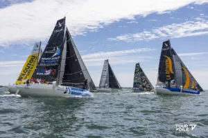 « C’était sympa, on a fait un super départ en Baie de Pornichet, grand soleil, mer plate, 10-12 nœuds, vraiment de belles conditions […] À Rochebonne, on a réussi à doubler le bateau Paprec Normandie, Ensuite, c’est un grand bord de près avec passage de front : du vent, des rotations, de la pluie, une mer croisée. Il ne fallait pas faire dans ladentelle, il fallait attaquer comme des sangliers. »