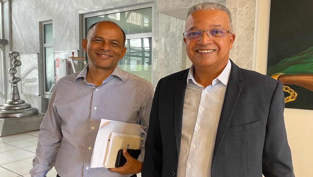 De gauche à droite : Emmanuel Séraphin, maire de Saint-Paul et Cyrille Melchior, président du Département et, peut-être, futur candidat de la droite à la mairie de Saint-Paul en 2026. L’union sacrée un jour, mais pas toujours ! (Crédit photo : Y.M)