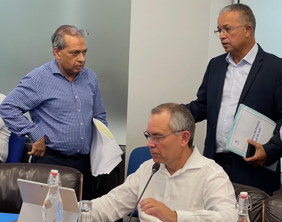 Ont participé à ces échanges avec les membres de la délégation sénatoriale aux outre-mer Serge Hoareau, président de l’association départementale des maires de La Réunion, Héric André, 1er vice-président de l’association des maires de Guadeloupe, Jean-Claude Maes, président de l’ACCDOM, Sophie Charles, vice-présidente de l’ACCDOM et Didier Laguerre, maire de Fort-de-France, et Mohamadi Madi Ousseni, maire de Chiconi.