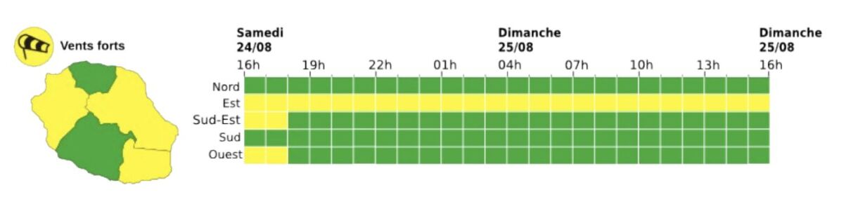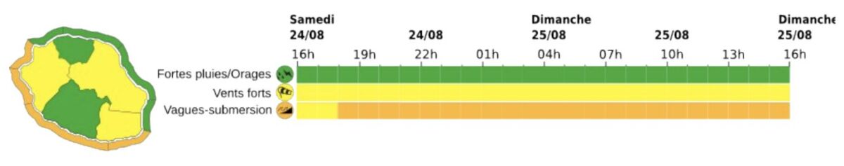 Météo France a émis plusieurs vigilances concernant les conditions météorologiques à La Réunion pour ce week-end du 24 août. Un épisode de vent fort et de houle australe exceptionnel est attendu, mettant en danger les régions de l’Ouest, du Sud et du Sud-Est.
