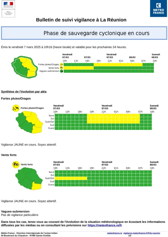Les habitants sont invités à suivre les prévisions météorologiques et à se tenir informés via les canaux officiels de Météo-France (meteofrance.re) et la plateforme de vigilance (vigilance.meteofrance.fr).