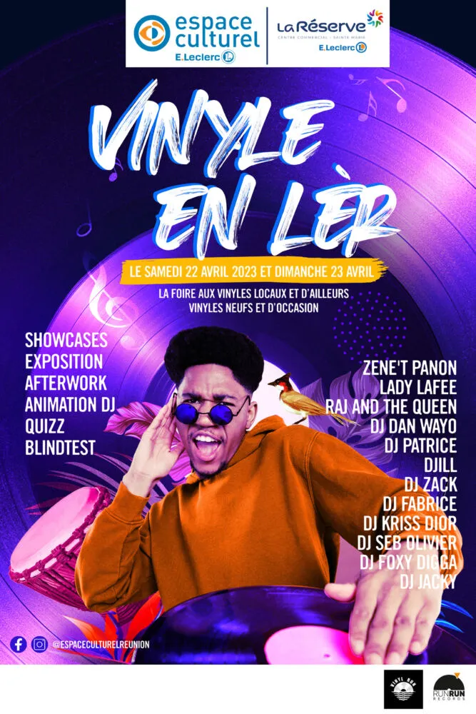 Après le succès des précédentes éditions dans l’Ouest au centre commercial du Portail à Saint-Leu, les Espaces Culturels E.Leclerc, « Vinyle en lèr » s’installe pour la première fois au E.Leclerc La Réserve Sainte-Marie le samedi 22 et dimanche 23 avril. La grande