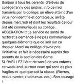 2. bizarre sa drôle de protocoles pour protéger les autres élèves de ce collège ainsi que les professeurs,un virus contagieux y circule dans cette école et né n’a aucune enquête sanitaire de l’ARS,ni de nettoyage des locaux où réfectoire,bizarre cette histoire