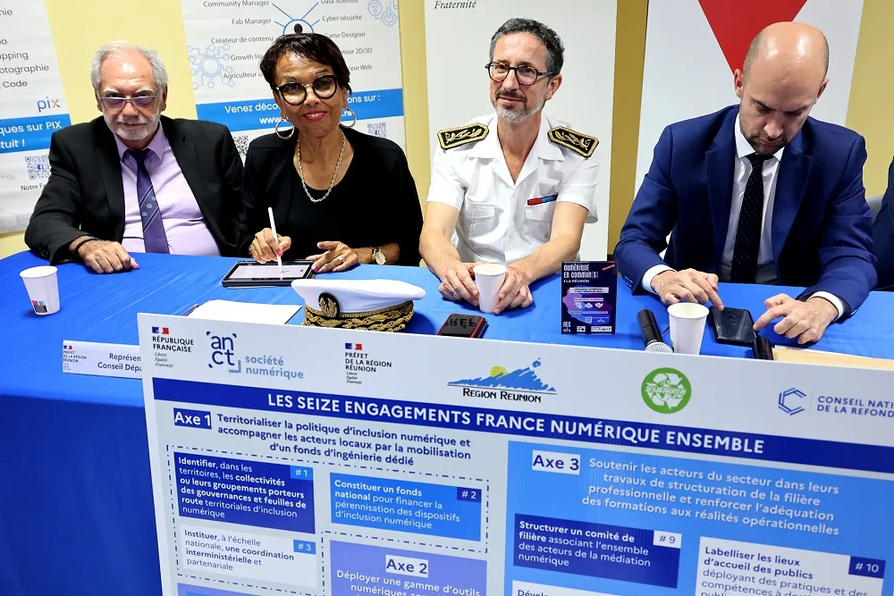 Dans le même temps, les ministres Rima Abdel Malak (Culture) et Philippe Vigier (délégué aux Outre–mer) évoquaient la 21ème école d’architecture Nationale de France, la 1ere des Outre– Mer, avec Olivier Hoarau. Le maire du Port a affirmé : « Il y a 4 ministres qui viennent visiter les sites du Port sur le commerce, le numérique, l’école d’architecture, on se réjouit qu’ils viennent voir le travail qui est abouti, l’énergie qui est mise en place par les différents acteurs du territoire : la population, les équipes municipales notamment et les partenaires pour l’aboutissement des projets ».