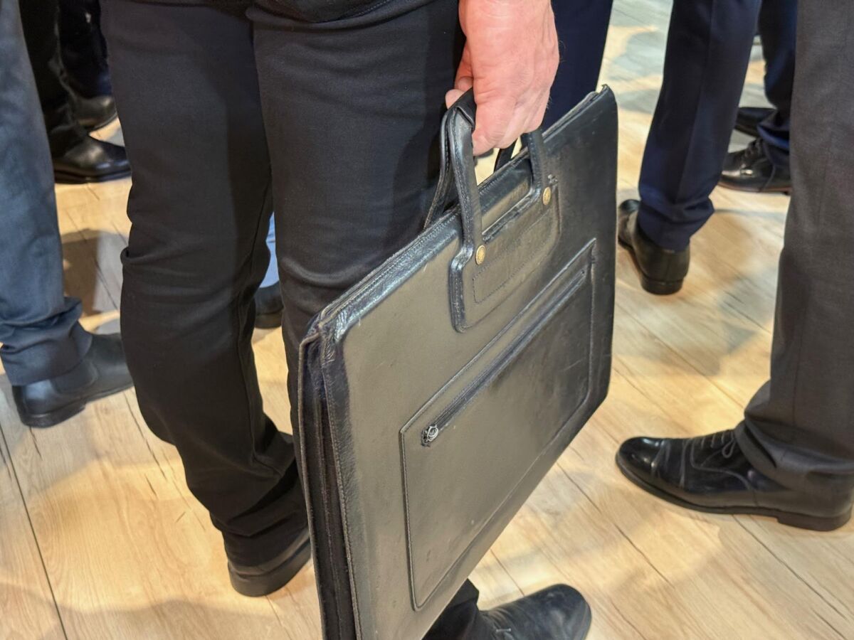 Ce petit sac, qui n’en est pas un, porté par un agent de sécurité de Matignon, est en fait une sorte de gilet par balle en cas d’attaque contre le Premier ministre.