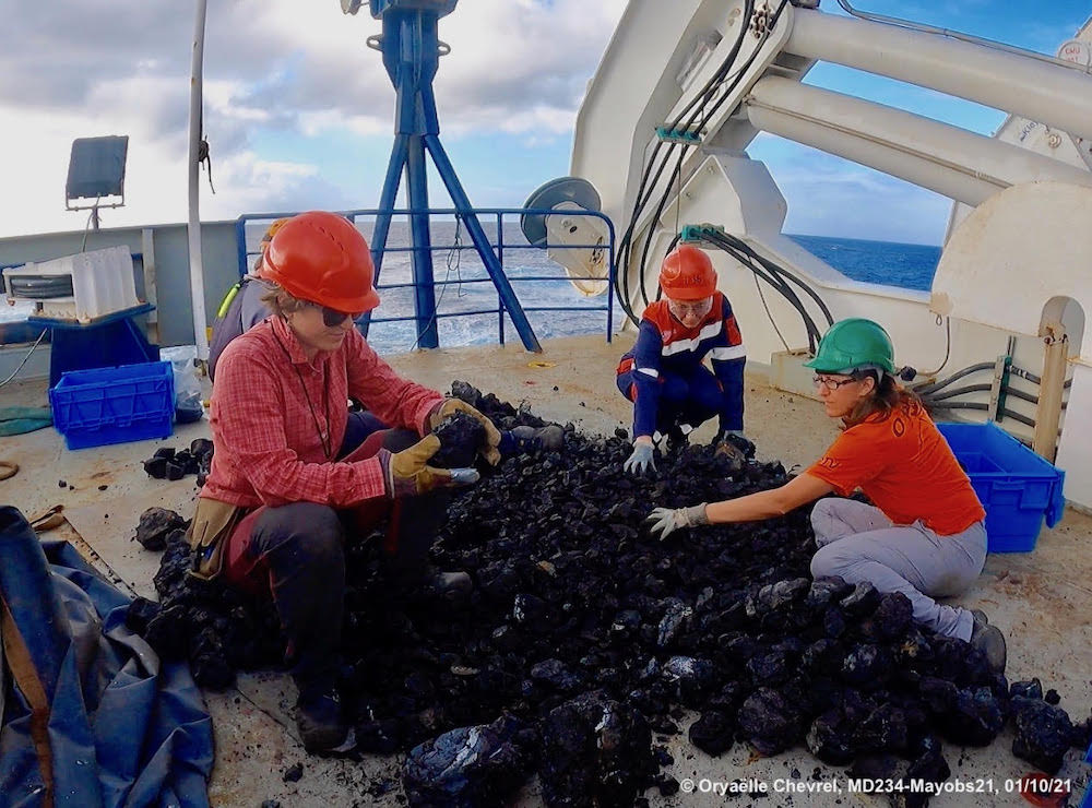 L’équipe constituée de scientifiques de l’IPGP, de l’Ifremer, du BRGM, du CNRS, de l’IUEM, des Universités de La Rochelle et de Clermont-Ferrand (UCA), et de l’IRD, a ainsi réalisé des mesures et des prélèvements permettant de mieux comprendre la formation et l’évolution de la chaine volcanique sous-marine, pour suivre et anticiper le développement du nouveau volcan, et ainsi fournir des outils d’aide à la décision sur les dispositions à prendre pour protéger les populations environnantes. Dans ce cadre, Oryaëlle Chevrel a particulièrement travaillé sur les prélèvements de roches de la chaine volcanique sous-marine. Ces échantillons une fois ramener au Laboratoire Magmas et Volcans de l’UCA, seront analyser afin de déterminer leurs propriétés physiques, chimiques et thermiques qui sont la clé pour comprendre la dynamique éruptive.