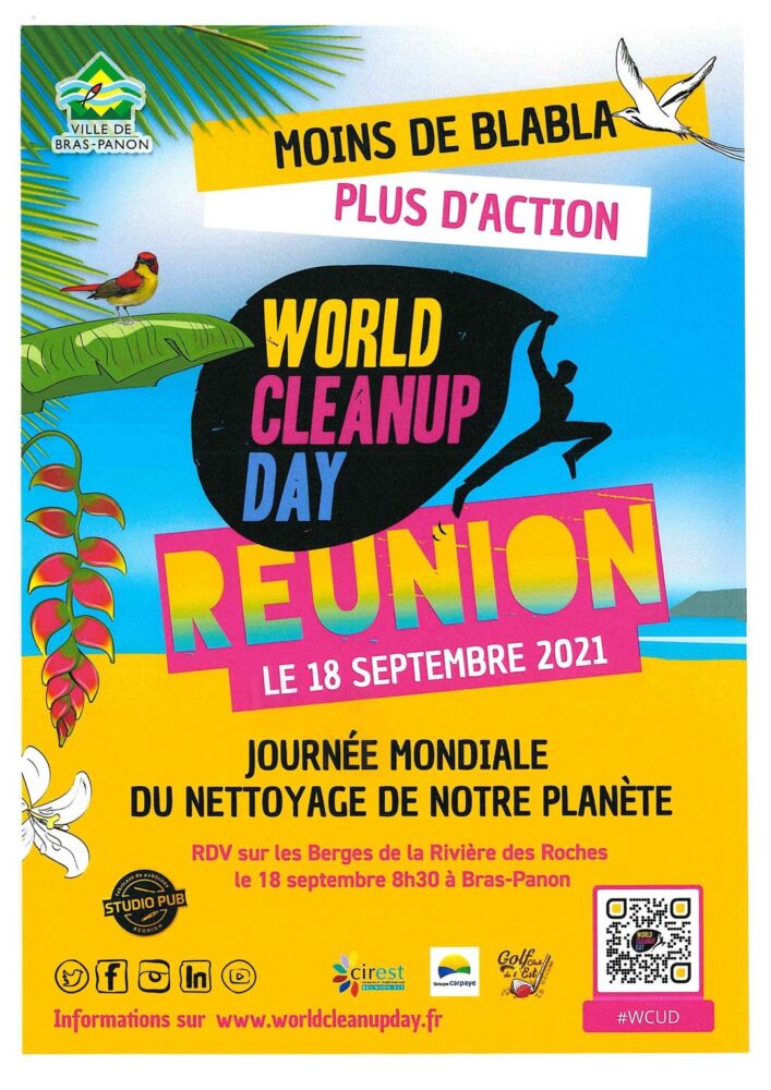 La 4ème édition du World CleanUp Day (WCUD) se déroulera dans le monde entier et à Bras-Panon ce samedi 18 septembre de 8H30 à 12H00. C’est un rendez-vous citoyen, où partout dans le monde des opérations de nettoyage sont organisées le même jour dans une ambiance festive, pour lutter contre les dépôts sauvages d’ordures.