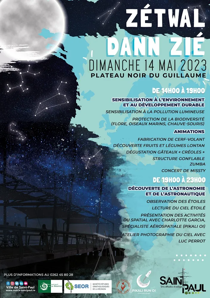 La seconde édition de l’année, “Zétwal dann’ Zié” aura lieu ce dimanche 14 mai au Plateau Noir du Guillaume. C’est en compagnie de l’association Pikali Reunion Océan Indien de la Saint-Pauloise, Erika VELIO, ingénieure aérospatiale que la Ville de Saint-Paul vous propose d’aller à la découverte des étoiles.