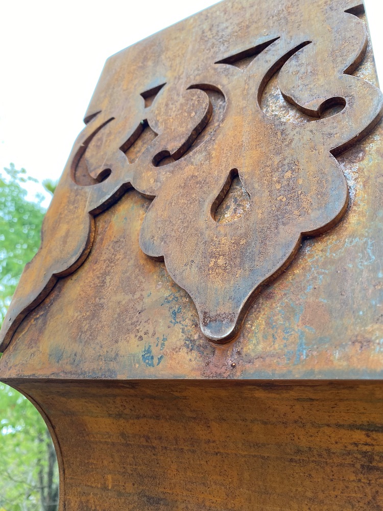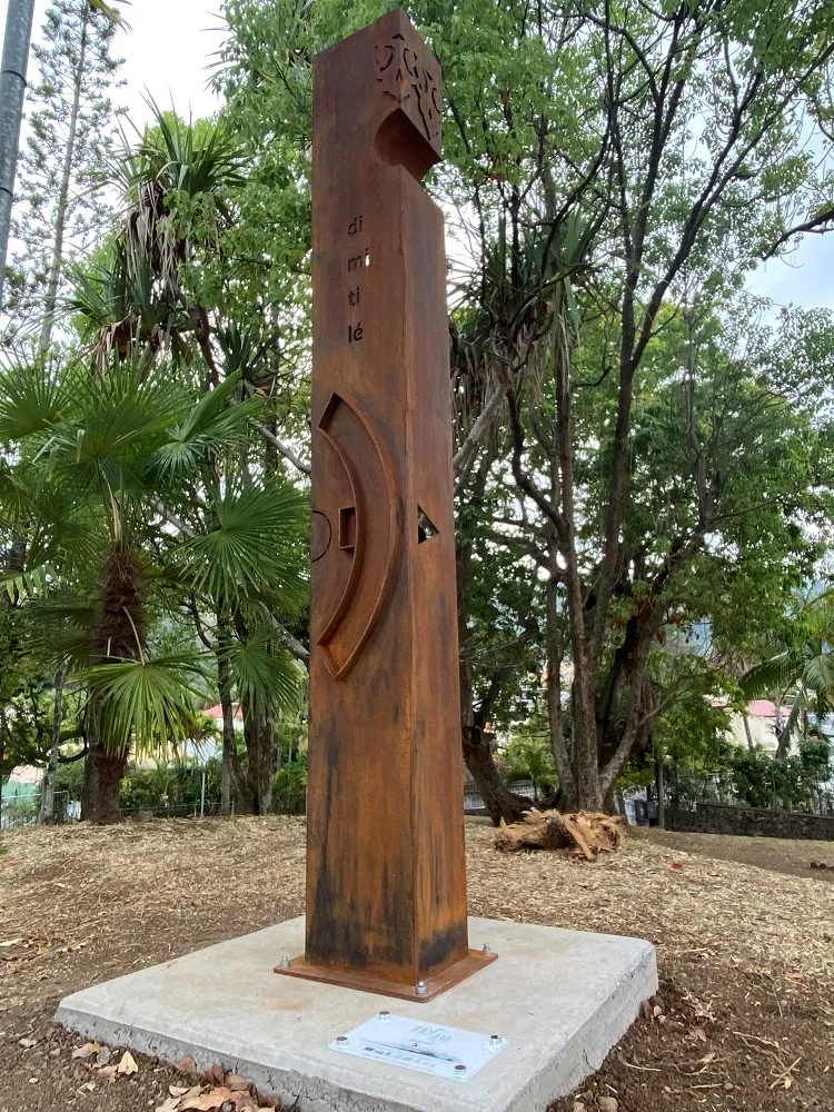 L’œuvre métallique prônant fièrement au cœur de l’arboretum, est le 6ème zarboutan d’une série de dix placée sur le Sentié Fah’Âme – L’itinéraire patrimonial du Sud de La Réunion.